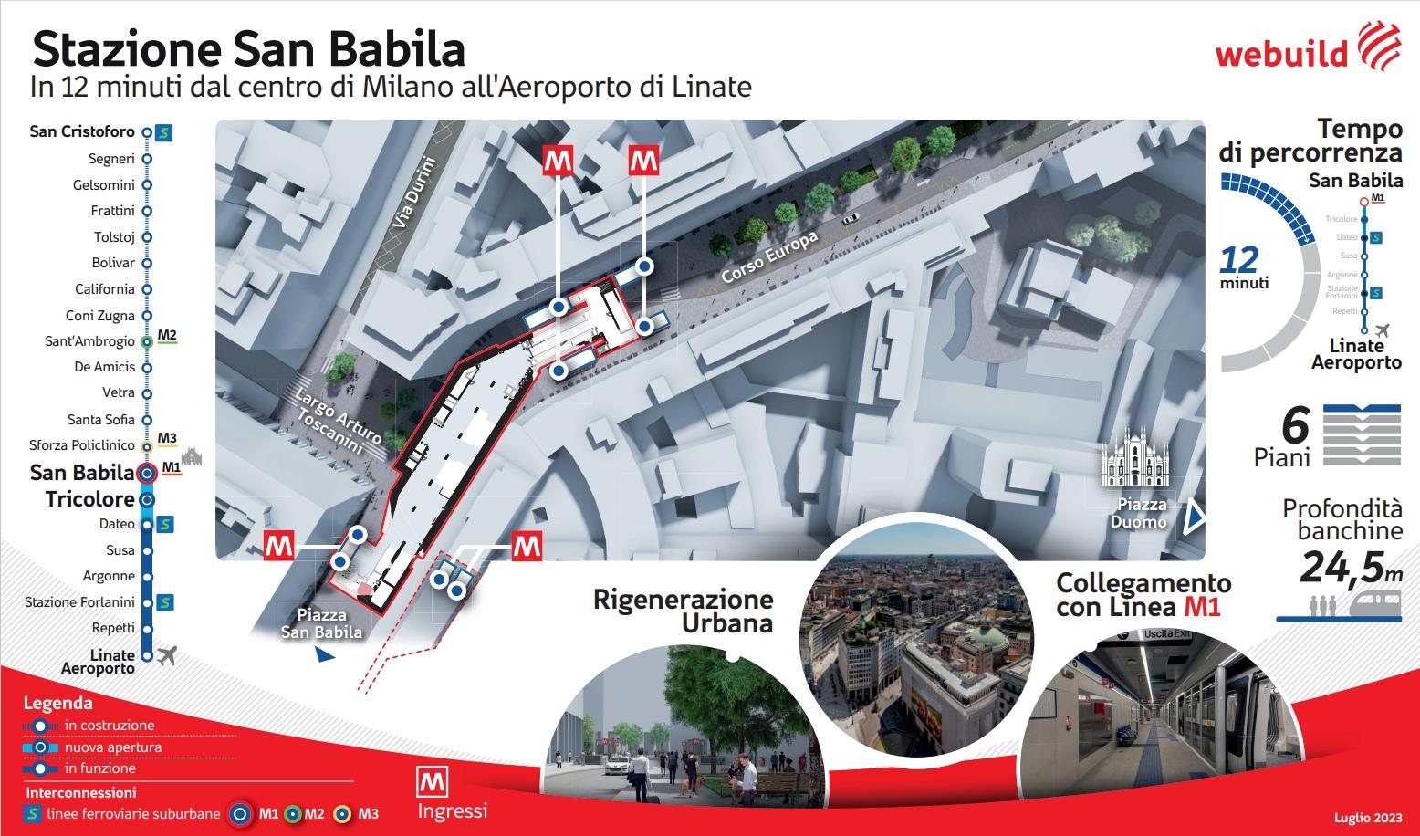 A luglio 2023 è stata inaugurata la Stazione San Babila della nuova Metro M4: solo 12 minuti per percorrere la tratta che dall’aeroporto di Linate arriva nel centro città. Aperta al pubblico anche la stazione Tricolore, che precede San Babila lungo il percorso della nuova linea.